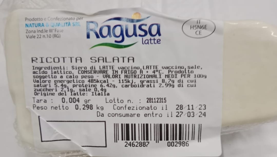 RICOTTA FRESCA MOZZA SICULA Pezzi per cartone 1 - Peso 1