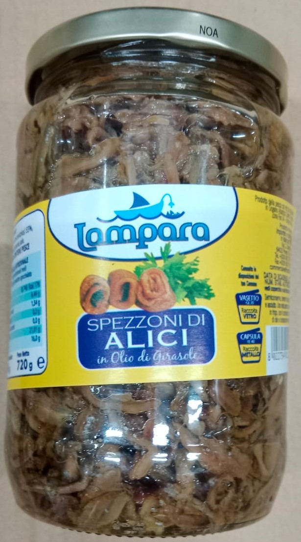 ACCIUGHE PEZZI GR 720 LAMPARA OLIO DI GIRASOLE Pezzi per cartone 6 - Peso 0,72
